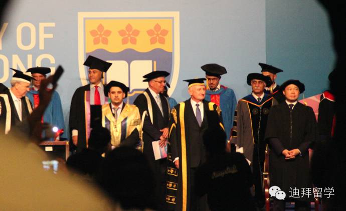 典礼在奏放阿联酋国歌和澳大利亚国歌中拉开帷幕, 大会由迪拜卧龙岗大学行政总监Brett Lovegrove主持,各位贵宾随着大学权杖进入典礼会场