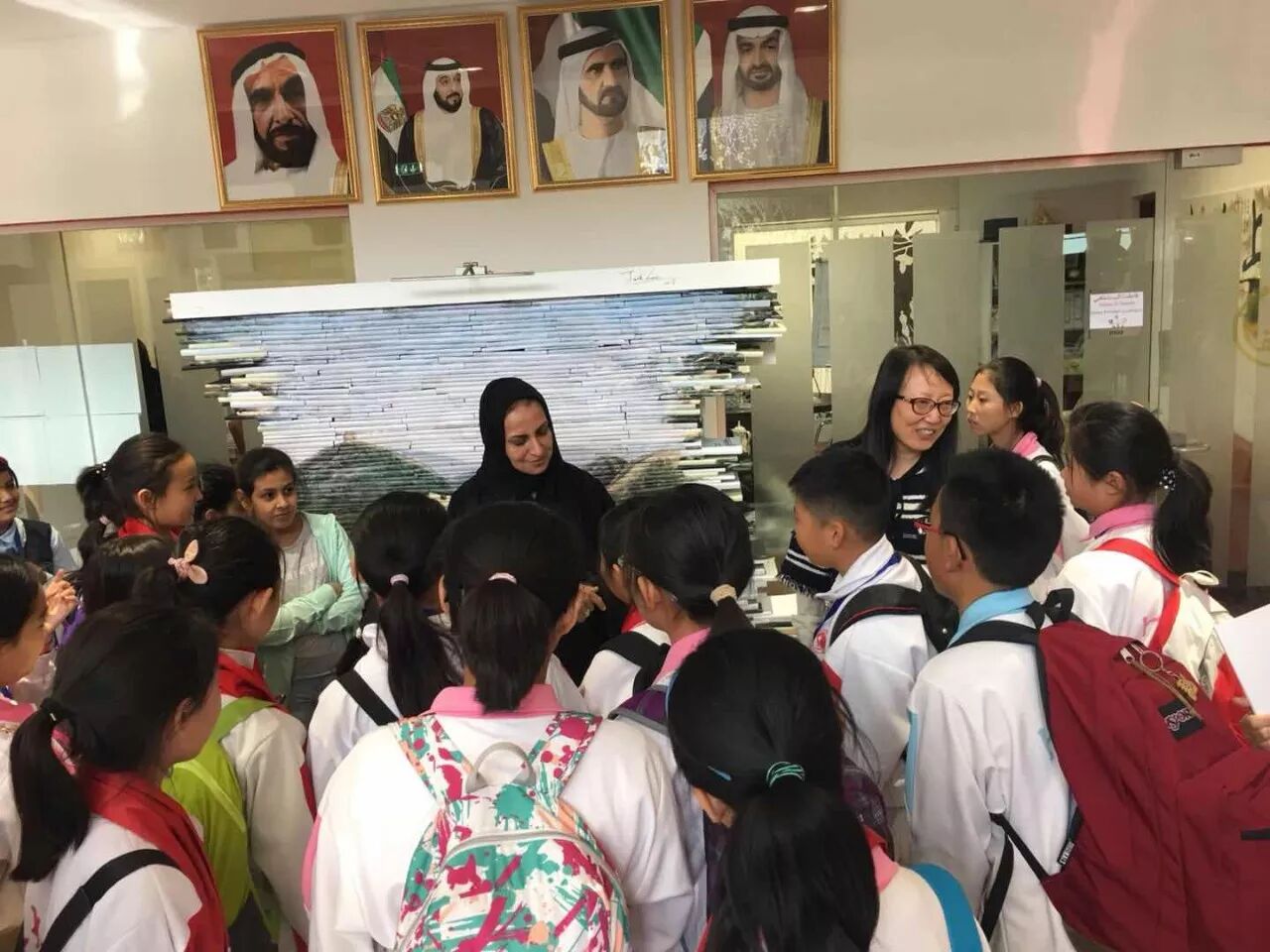 第四站 :参观了哈姆丹·本·扎耶德中文学校。学校采用阿、英、中三种语言教学,从小培养学生的语言能力和对中国文化的认知,是中东地区唯一一所正式使用中文教学的公立学校。该校现有学生673名,包括18名中国学生。教职员工117名,其中中国教师15名。在阿联酋领导人的亲切关怀和两国政府的共同努力下,哈姆丹中文学校不断发展,不仅成为当地最具特色的学校之一,也是阿中友谊结出的又一硕果。 本次的研学,以教育合作为纽带,极大的推动了学生之间的友好交流。