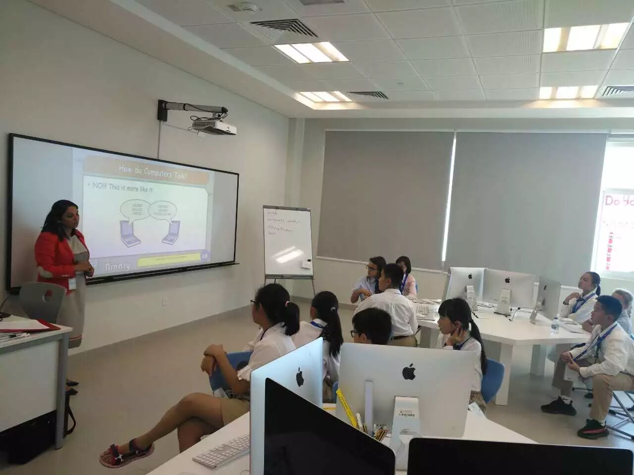 学生和老师们插班到课堂,零距离和国外的小朋友互动学习。