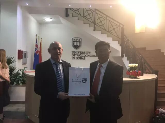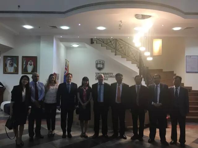 随行下午拜访位于迪拜知识园的澳洲卧龙岗大学迪拜分校,澳洲卧龙岗大学总校国际交流主任Russel Woodard携澳洲卧龙岗大学迪拜分校商学院院长Barry教授和学生管理中心主任阿赫麦德接待进江财一行,迪拜东方智慧中国留学生服务中心负责人周彤彤老师出席此次洽谈。