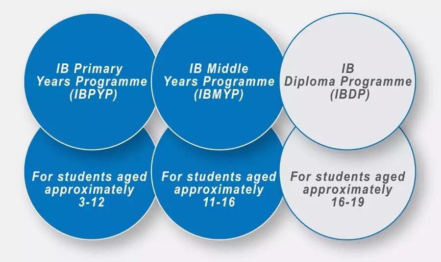 目前,IB已经发展出一套非常成熟完善的教育体系,包括四大板块:3-12岁的IB小学项目(IBPYP),11-16岁的IB中学项目(IBMYP),17-18岁的大学预科项目(IBDP)以及刚刚推出的17-19岁的职业教育项目(IBCP)。IB的课程既是一个整体,也是独立的个体。每一板块皆可独立教授。所以一个IB国际学校不一定要开设所有的IB课程。