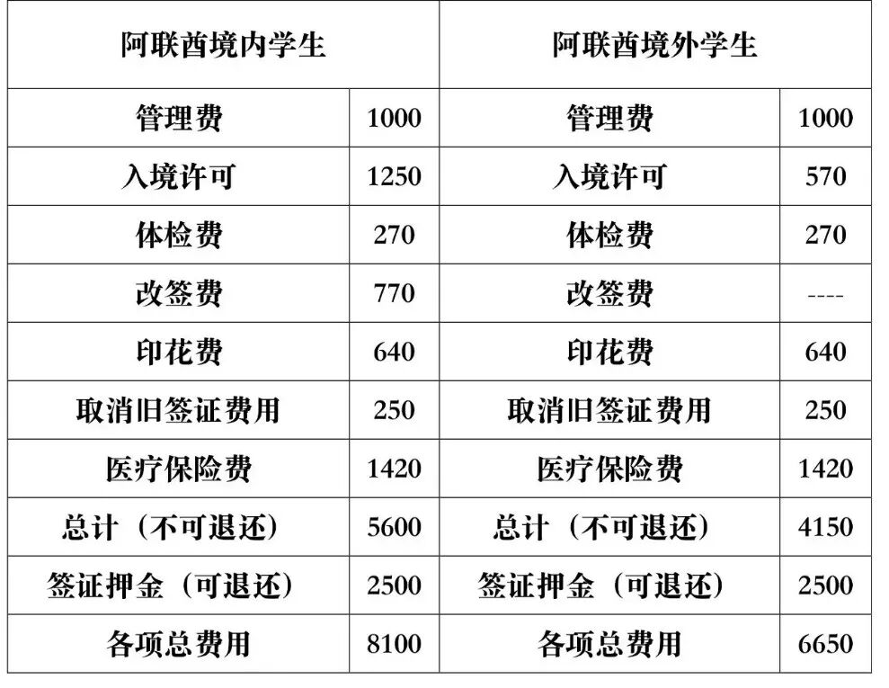 3.持有其他类长签的学生,转签学生签证费用为 8050迪拉姆,不需要出境飞签。
